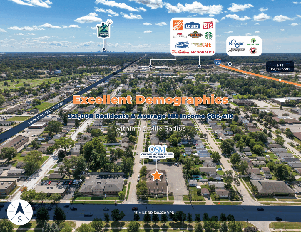 - Quick Access to I-75 (151,126 VPD) & I-696 (157,250 VPD)