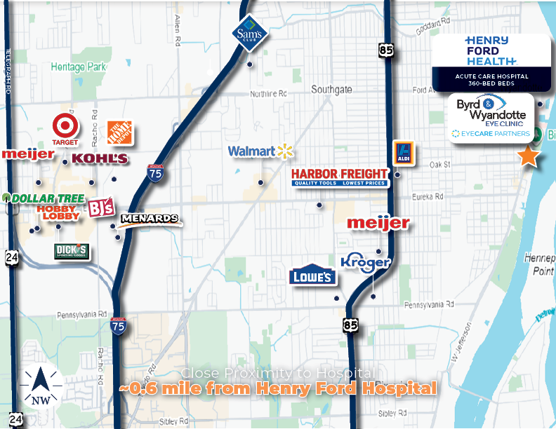 - Located less than one mile from Henry Ford Wyandotte Hospital