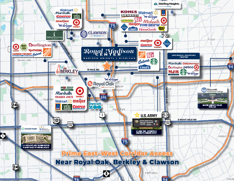 - Immediate Access to I‑75 & I‑696 for Regional Connectivity